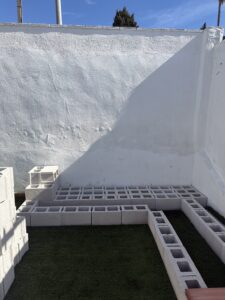 Deze buitenbank is volledig door ons gebouwd en afgewerkt met microcement — perfect voor het buitenleven aan de Costa del Sol.